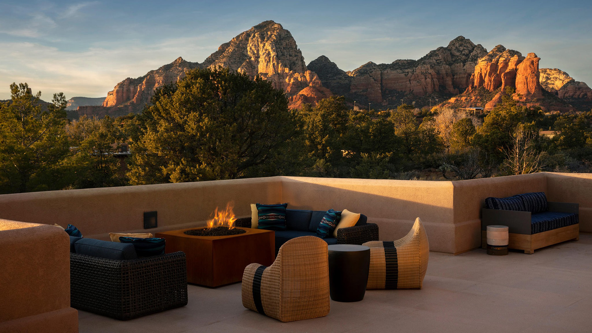 Discover the stunning beauty of Sedona, Arizona, with a stay at Sky Rock, one of the best hotels in the area. Recently renovated guest rooms and common spaces have been thoughtfully designed to reflect the surrounding mountains, with a color palette inspired by burnished brass hues and starry night skies. Each room features hand-painted dreamcatchers, paying homage to the Native American culture in the area. Relax in sizeable, comfortable rooms nestled into the landscape, and take in the breathtaking views from the shared terrace. Whether you're enjoying a sunrise coffee, a sunset happy hour, or moonlit yoga under the stars, Sky Rock offers an unforgettable Sedona experience.