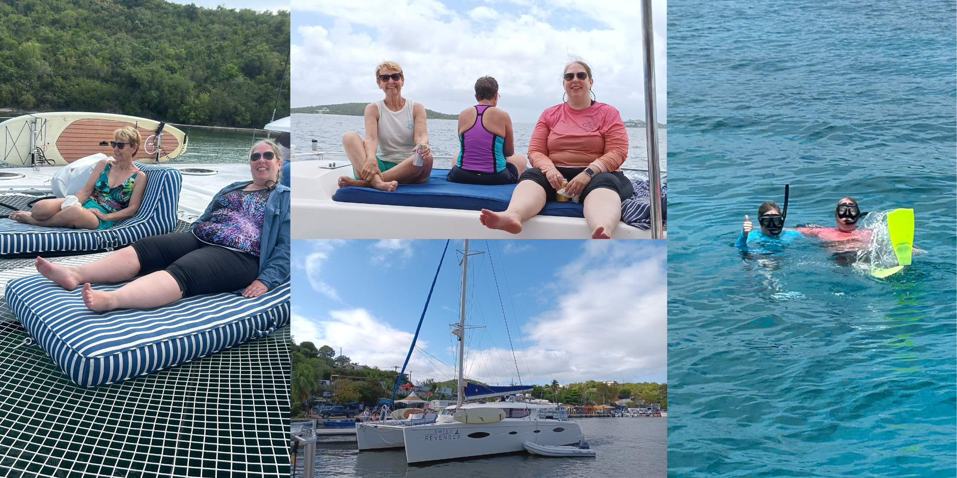 Our final full day was spent aboard Sweet Revenge II. We soaked in the magic of the Caribbean from the water, with plenty of time for snorkeling, lounging, and laughing as we drifted between islands.